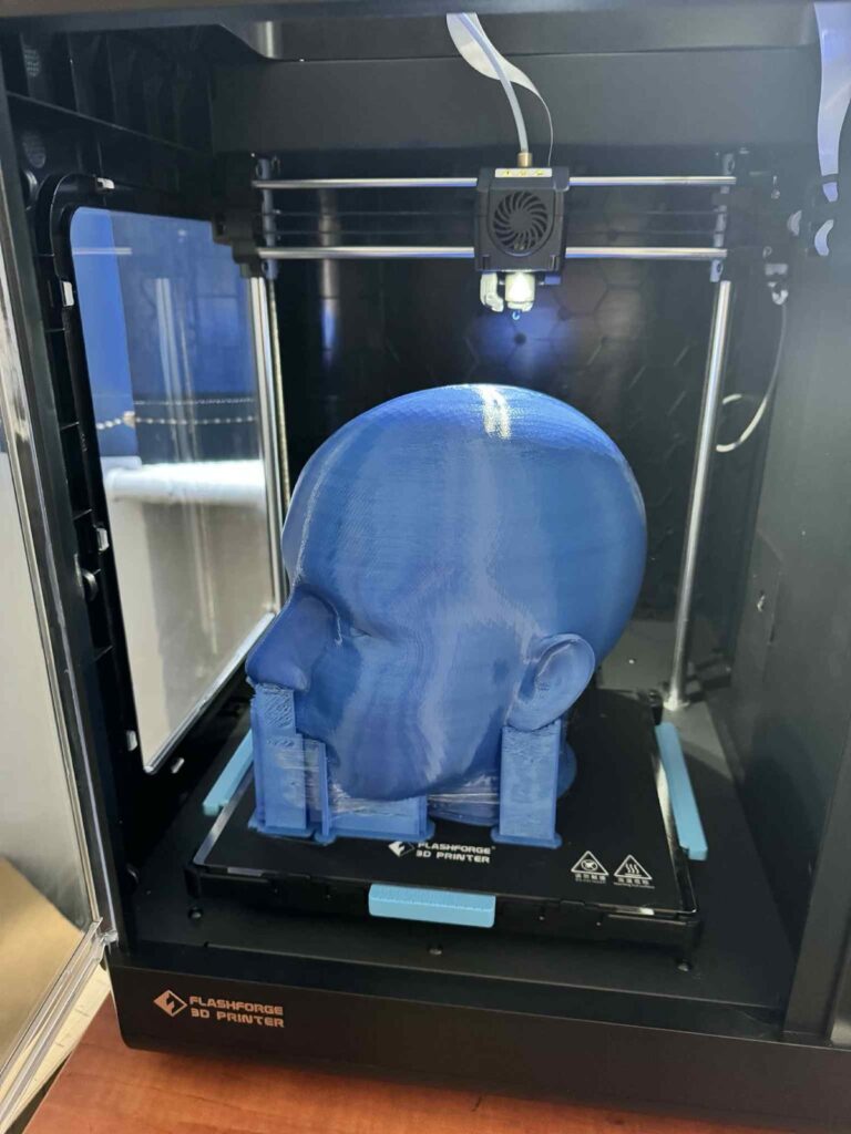 - zaprojektowaliśmy i wydrukowaliśmy w technologii 3D realistyczne modele głowy i klatki piersiowej, które posłużą do budowy manekina badawczego,